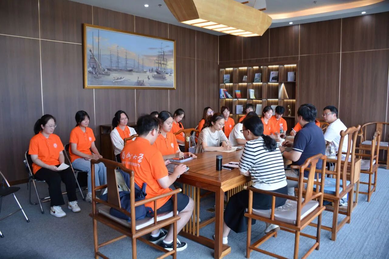 下午,实践队迎来了一场别开生面、意义深远的交流座谈会,对话船政文化领域的重量级专家,宛如聆听了一堂鲜活生动的“船政思政课”。实践队有幸与马尾船政文化研究会会长、船政文化博物馆名誉馆长陈悦教授、船政文化博物馆馆长王芳女士、福建最忆船政文旅发展有限公司