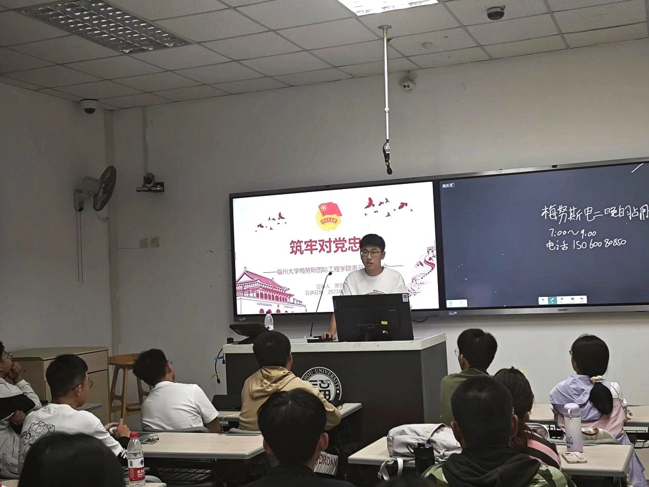 青马班宣讲会于福州大学旗山校区顺利举办。本次宣讲会由学院青马班成员苏景瑄、苏佳莉及庄晨鑫三位同学组成宣讲团,围绕筑牢对党忠诚、坚定理想信念、发扬斗争精神、勇于挺膺担当四个主题,向学院大一新生们进行宣讲,引导同学们积极向党,激发爱党、敬党的热情,为初入大学的大一新生们讲述了何为青年人、何为青马班、何为中国共产党人。