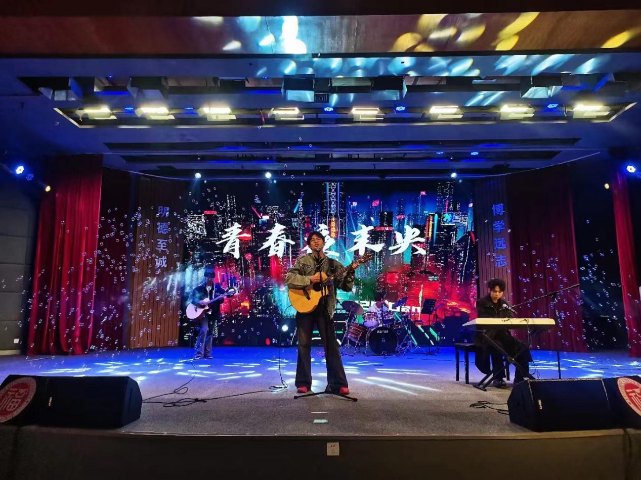 灯光闪烁,精彩绝伦的乐器表演即将上演。同学们吹弹歌舞,每个动作都充满力量与灵动。舞姿和谐而舒展,充满青春的活力与朝气,尽情地展现属于青年人的才华与热情!